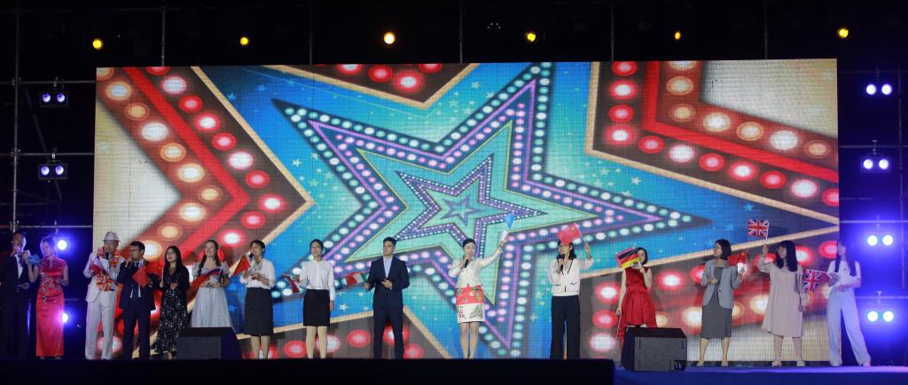 院全体教师用英、日、俄、意、德、法等多国语种表演的歌曲联唱将整场晚会推向高潮,让在场的嘉宾和同学们感受到了向日葵视频