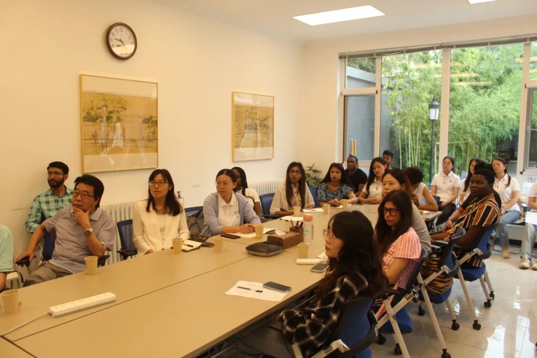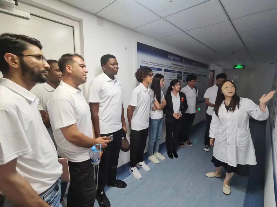 师生进行了充分交流。通过范金虎教授与胡尚英教授的介绍,学生们加深了对北京协和医学院以及肿瘤医院概况和发展历史的了解,认识到北京协和医学院作为我国最高医学研究机构和最高医学教育机构,为我国现代科学医学体系的建立和发展做出了重要贡献。随后流行病室老师带领留学生们沉浸式参观了肿瘤医院流行病学研究室,通过展板介绍,让学生们更加直观地感受到了中国肿瘤防控的发展历史与成果。