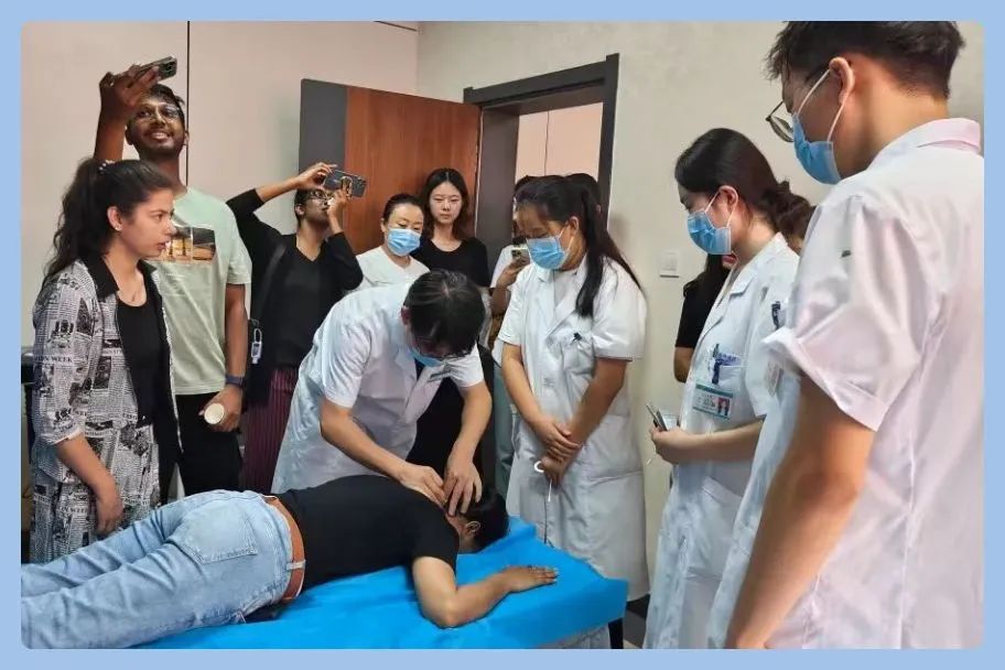 巴基斯坦籍博士留学生普百特在中医诊疗室体验了中医针灸,激动地对大家说“我感觉血液一下就通了,中医很神奇!”
