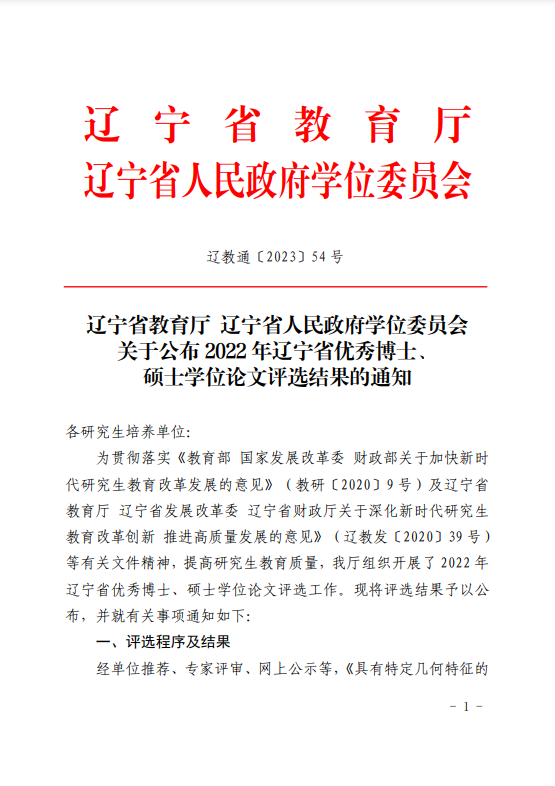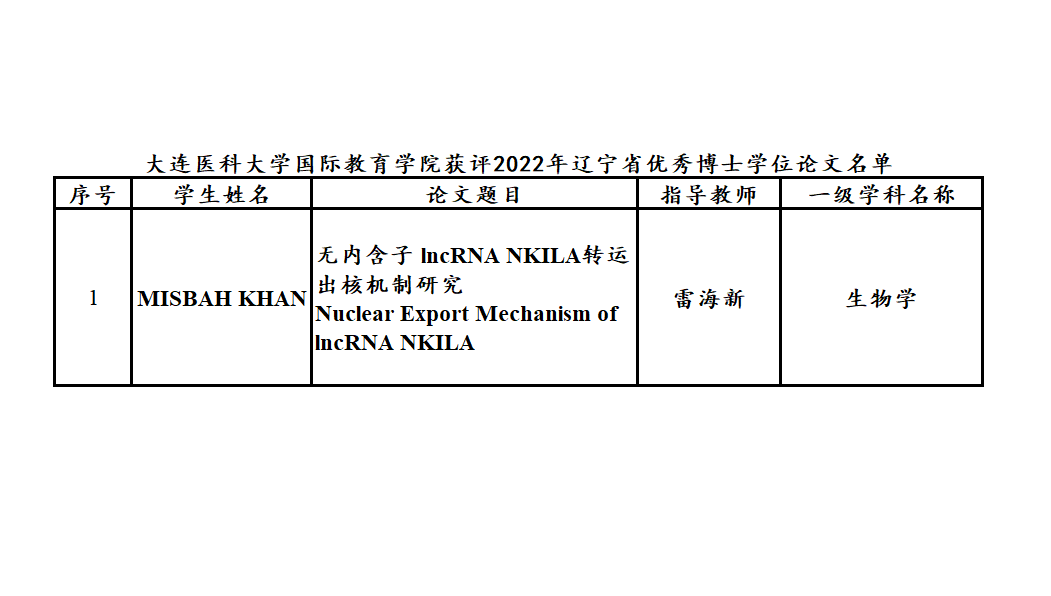 博士留学生首次获评辽宁省优秀博士论文。
