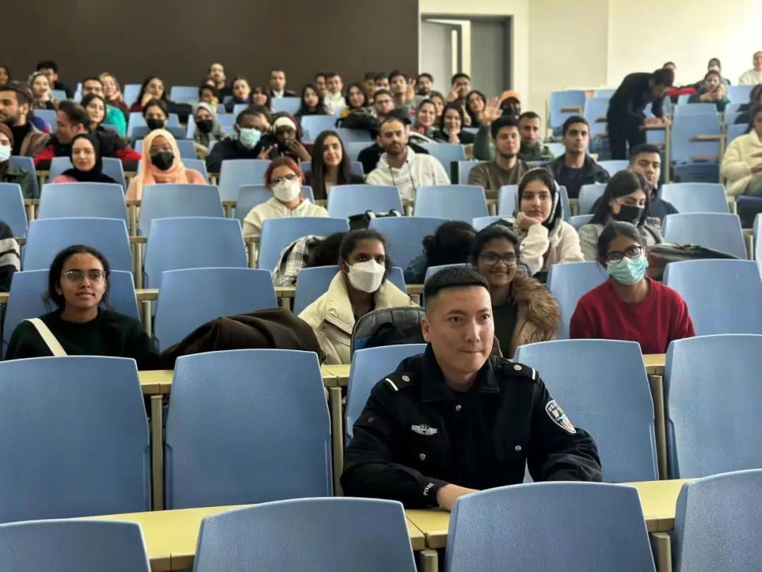 On the afternoon of April 21, in order to further improve the fire awareness and emergency response ability of teachers and students, International Education College invited Mr. Feng Kaiyuan from the Security Department of the university to give fire safety education to international students of grade 2020-2022.