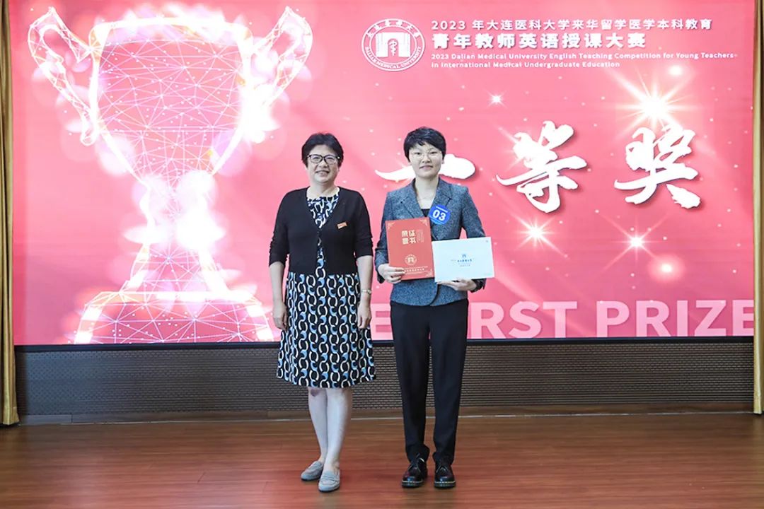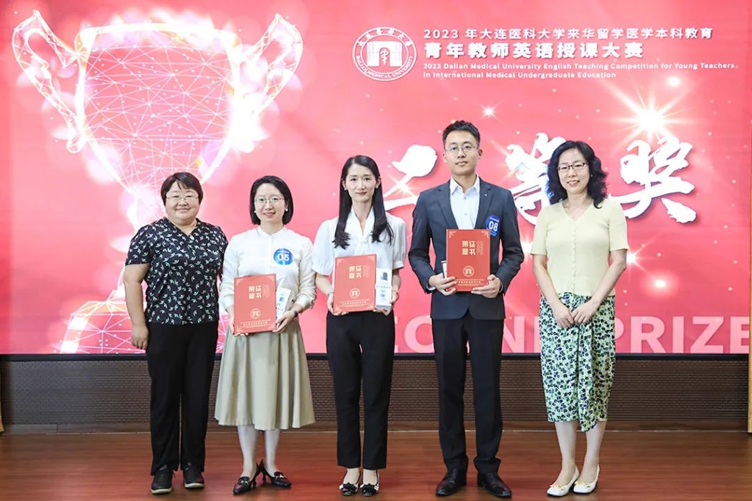 经过激烈角逐,附属第一医院董畅荣获一等奖,药学院芦晓龙、公共卫生学院王宁宁、附属第二医院邢一达荣获二等奖,检验医学院李杭、中西医结合学院王慧一、附属第一医院郑邵微荣获三等奖,附属第二医院董营、基础医学院张鸽、李潺、人文与社会科学学院赵璐荣获优秀奖。一等奖选手董畅将代表学校参加第四届来华医学留学生本科教育青年教师英语授课展示活动。