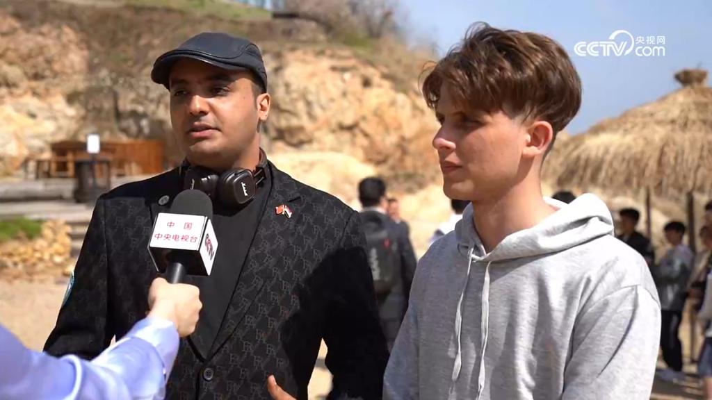 留学生参加团市委“大连行”活动,并接受采访。-央视网报道