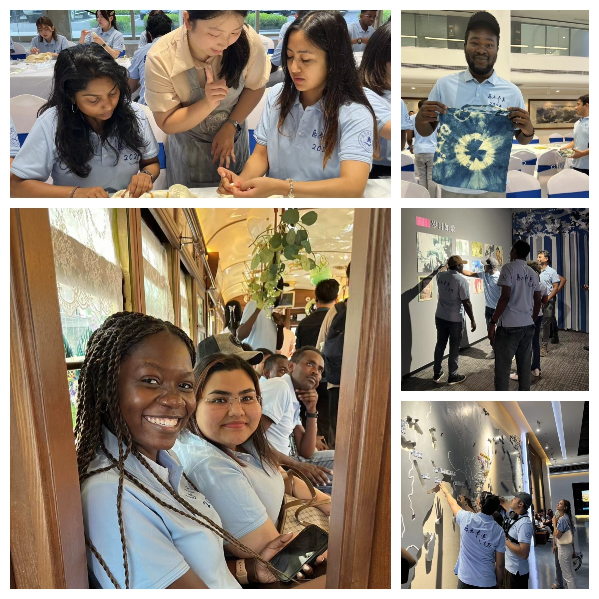 下午,留学生们搭乘201路百年专列穿越大连老城区,在古香古色的车厢内,欣赏着滨城独特的流动风景线。紧接着,留学生们来到大连三十七相文旅科技产业园参观,并被这个现代、多元、生动的文化空间所吸引:在收音机博物馆,通过众多刻有岁月痕迹的收音机以及史料感受着融合其中的历史以及城市记忆,感受着老厂区的新生;在非遗传承人的带领下学习传统扎染,留学生们运用捆扎、夹板等制作手法对帆布包进行修饰。大家迫不及待地打开自己的扎染“盲盒”,“老师,您看,我做的这个扎染的布包像不像被花朵簇拥?!……”大家兴奋地展示着自己的作品,在体验中感受传统文化韵味,分享着扎染的乐趣和收获的喜悦。