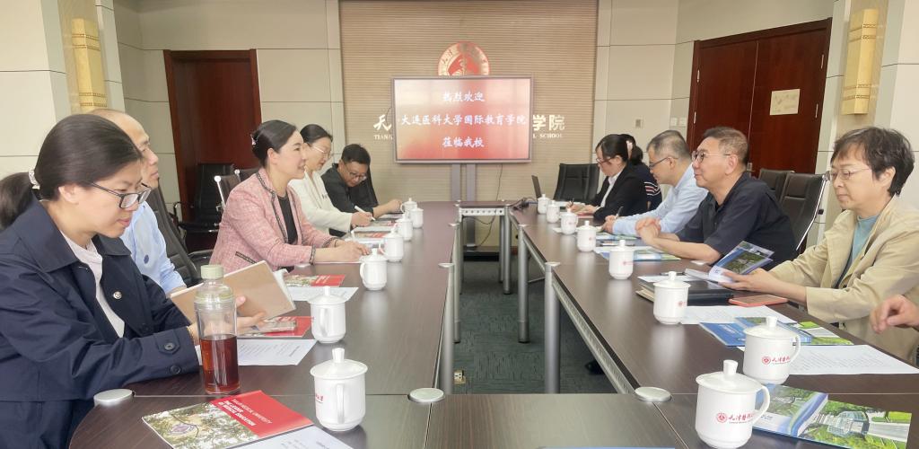 院院长卢苇带队赴天津医科大学调研,与天津医科大学国际医学院院长韩霏及相关部门负责人进行了深入交流。