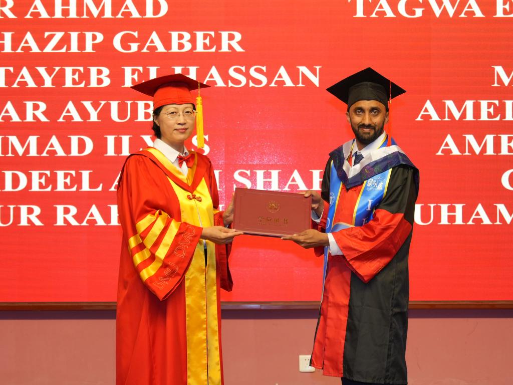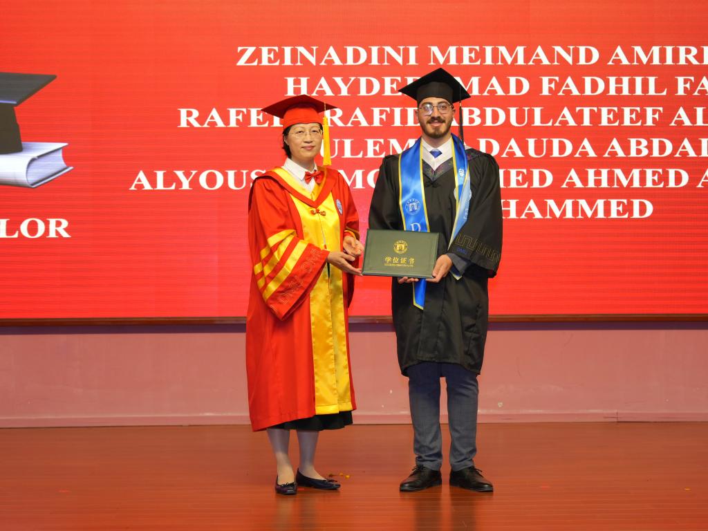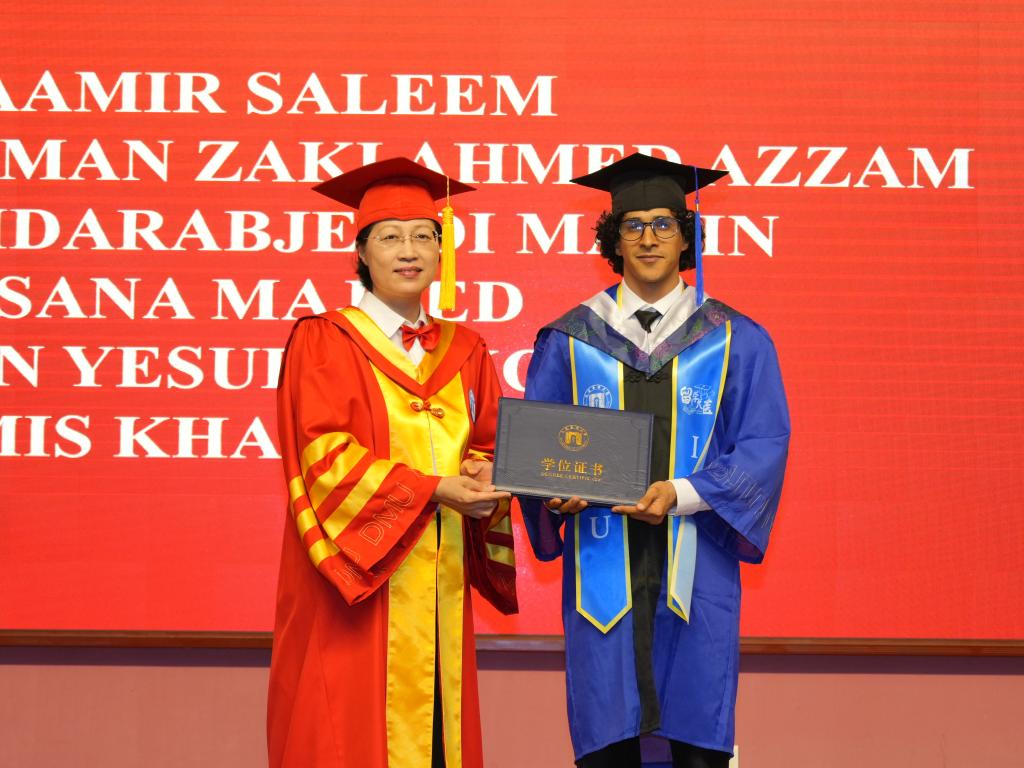 2025届(夏季)国际学生毕业典礼暨学位授予仪式在图书馆一楼学术报告厅举行。来自38个国家和地区的117名国际学生毕业生齐聚一堂,共同庆祝他们在中国的学业圆满结束,开启人生新的征程。