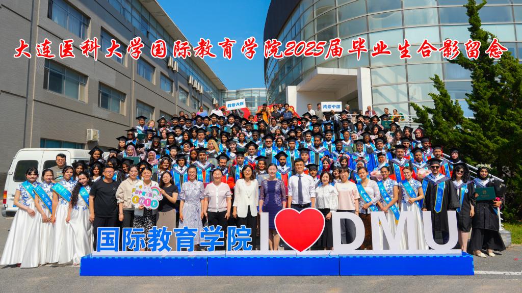 最后,毕业生们与老师合影留念,本次毕业典礼圆满结束。希望毕业生们永远铭记医学生誓言,坚守并传承大医人“明仁,济世”的情怀,带着在大医学到的知识和本领,回到自己的祖国,开启新的人生篇章。