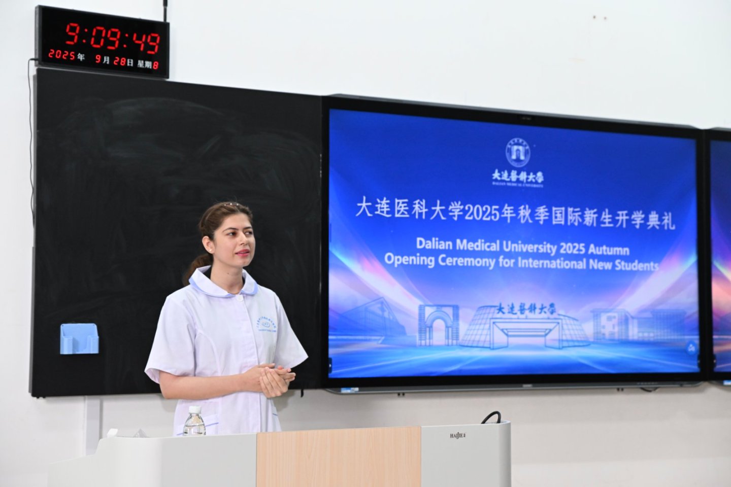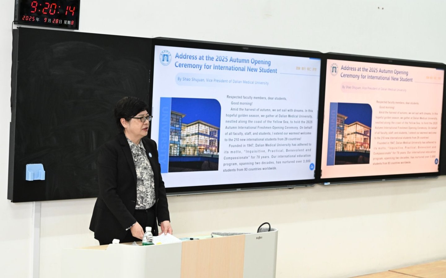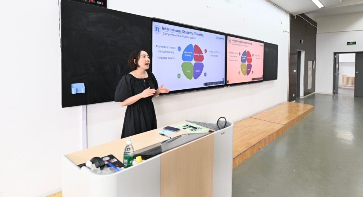 院111教室举行。来自29个国家和地区的210名留学生新生齐聚一堂,共同开启在中国医学殿堂的求学之旅。副校长邵淑娟、向日葵视频
