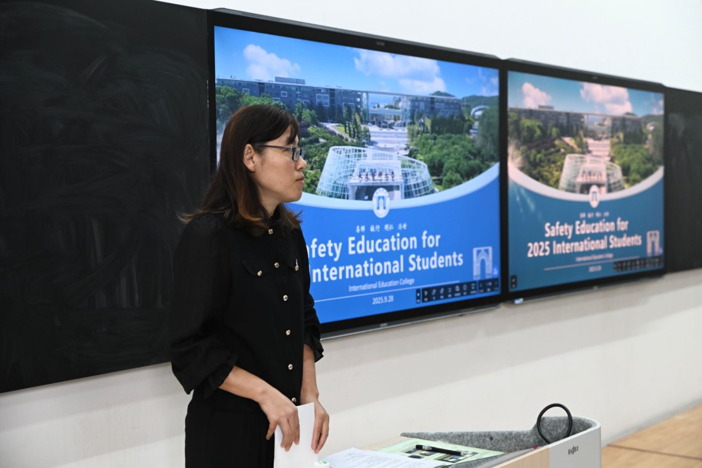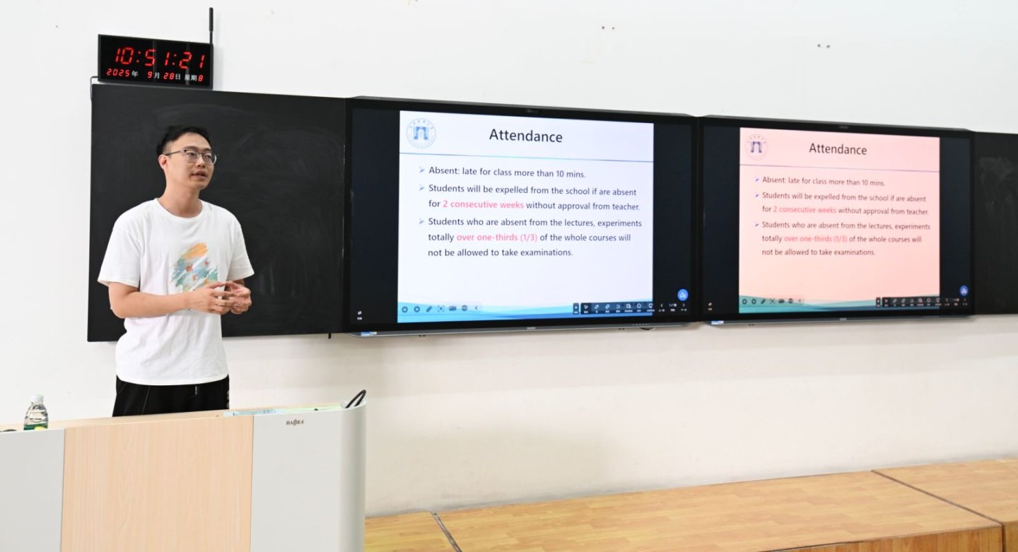 为帮助新生尽快适应在华学习和生活,学院还特别组织了安全教育培训及校规校纪宣讲会。会议特邀大连市出入境管理局、大连市交警支队旅顺口大队的警官,分别就出入境管理法律法规、电信诈骗、交通与人身安全、禁毒宣传以及防火安全教育进行宣讲。郭艳秋则围绕校园安全进行了主题教育。通过真实案例剖析,帮助学生们明晰在华学习应遵守的法律法规,了解交通安全注意事项,增强识毒、防毒、拒毒意识,提升消防安全能力,有效提升他们在日常生活中的安全防范能力,为校园生活与出行安全筑牢坚实屏障。随后,学院招生科与教学管理科分别就学院基本情况和教务管理规定作了详细介绍,帮助新生更好地规划学业,明确目标。