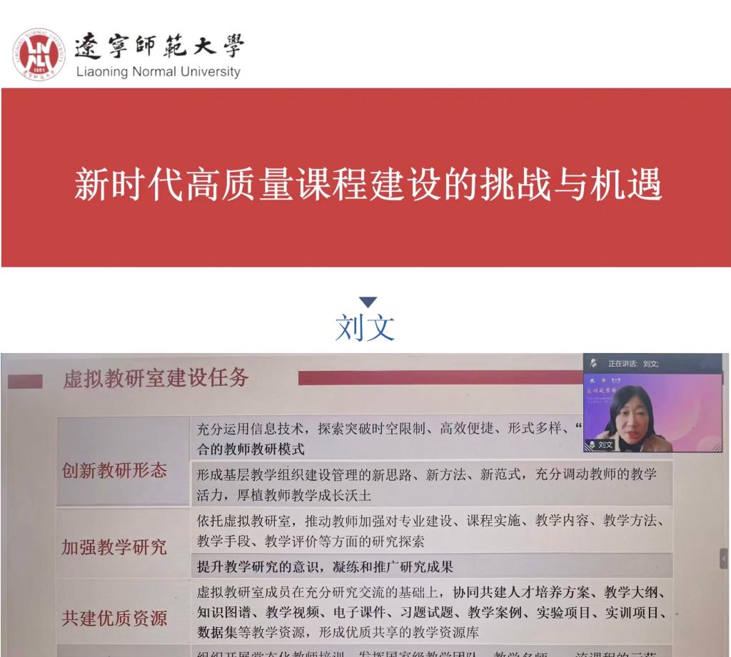 院联合教师教学发展中心线上举办虚拟教研室建设师资培训会。学校各虚拟教研室建设项目负责人、研究生导师及一线教师共50余人参会。培训特邀辽宁师范大学刘文教授、超星集团项目负责人孙斌作专题分享与实操指导。
