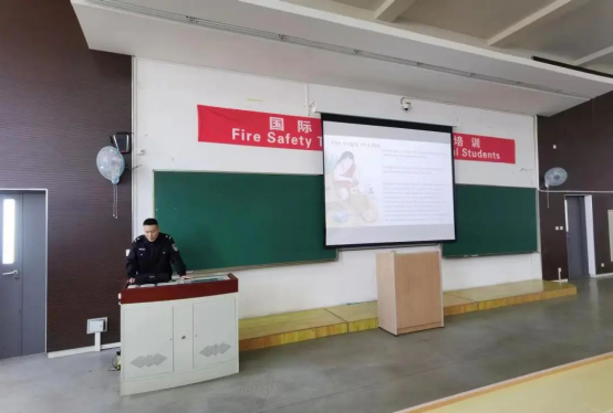 院特邀请学校保卫处冯开元老师对2020-2022级的留学生进行消防安全教育。