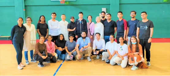 随后,刘冬柏为留学生展示了简化24式太极拳。表演过程行云流水般收放自如,留学生们被深深吸引,纷纷开始模仿老师的动作。潘晓兰从太极拳创立之初的目的——攻防入手,带领留学生们亲身体会了太极拳中一招一式的奥妙,也让留学生切身感受到了太极拳所体现的以柔克刚、以退为进的中国智慧。通过学习和体验,留学生们纷纷对太极拳和中国文化的博大精深表示赞叹,其中斯里兰卡籍留学生阿玛莎十分喜爱中华武术,她表示:“太极拳在全世界都很有名,在我的国家有很多人都想来中国学习太极拳,我非常开心能参加太极拳工作坊的体验活动,并非常期待下一期的活动。”