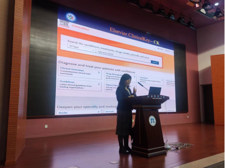 首先,图书馆文件检索教研室主任赵云艳对图书馆的馆藏资源进行了介绍,从馆藏种类、数量、特点以及如何利用电子数据库资源进行了深入浅出的讲解,让同学们对图书馆的馆藏资源有了更充分的了解。赵主任希望同学们可以充分利用这些资源,助力自己的医学学习。