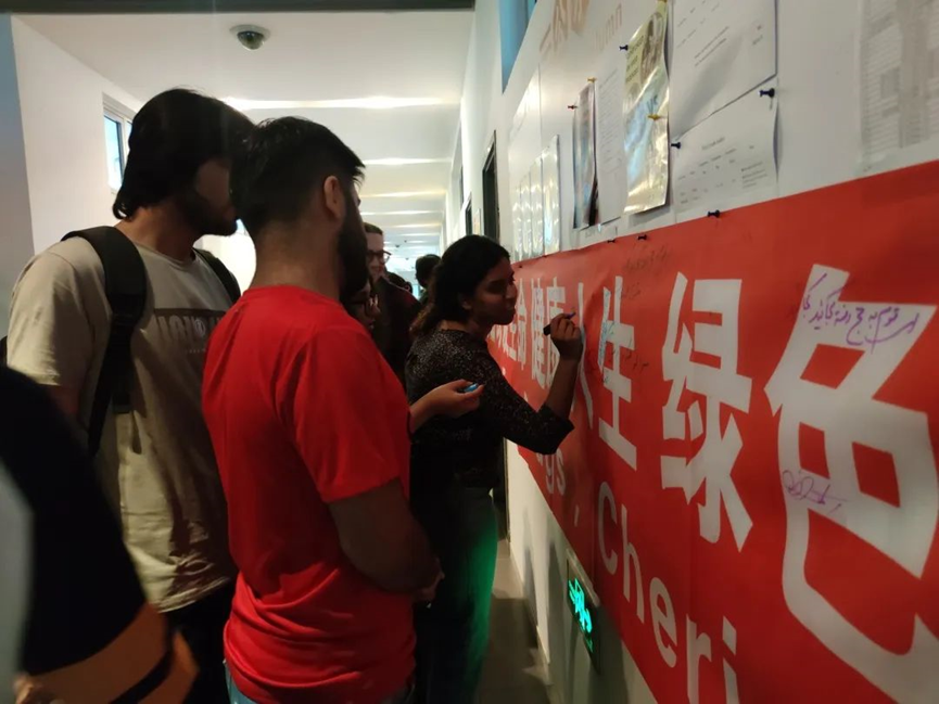 活动中,学院以宣传展板的形式向留学生详细介绍了毒品的类别及危害,提高留学生对毒品的防范意识。同时,学院组织留学生在印有“远离毒品 珍爱生命 健康人生 绿色无毒”的条幅上进行签名活动。留学生踊跃地签上了自己的名字并留写了对于平安及健康的美好祝愿。