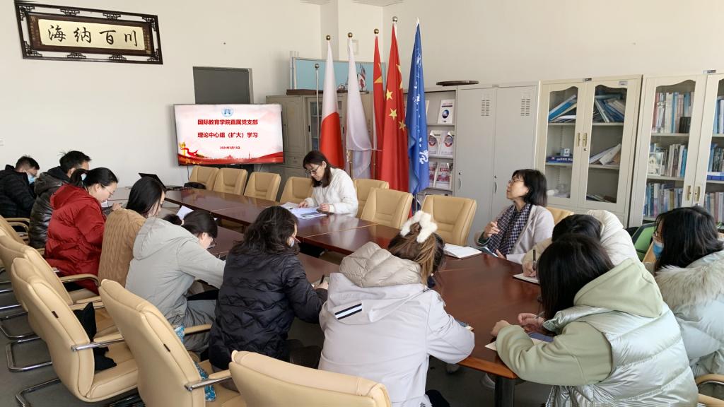 院(国际交流合作中心)直属党支部在学院322会议室召开了理论学习中心组(扩大)学习暨2024年全面从严治党工作会议。会议由党支部副书记郭艳秋主持,全体党员参加了此次会议。